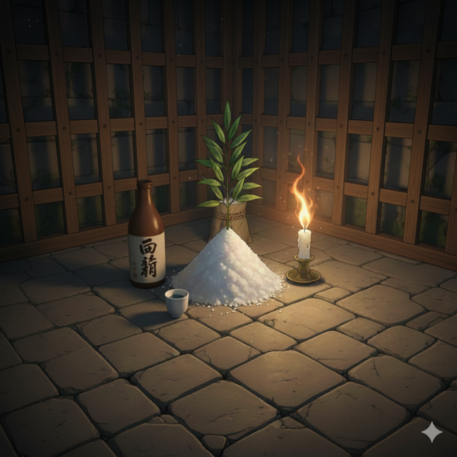 続いて、真ん中に塩を盛り